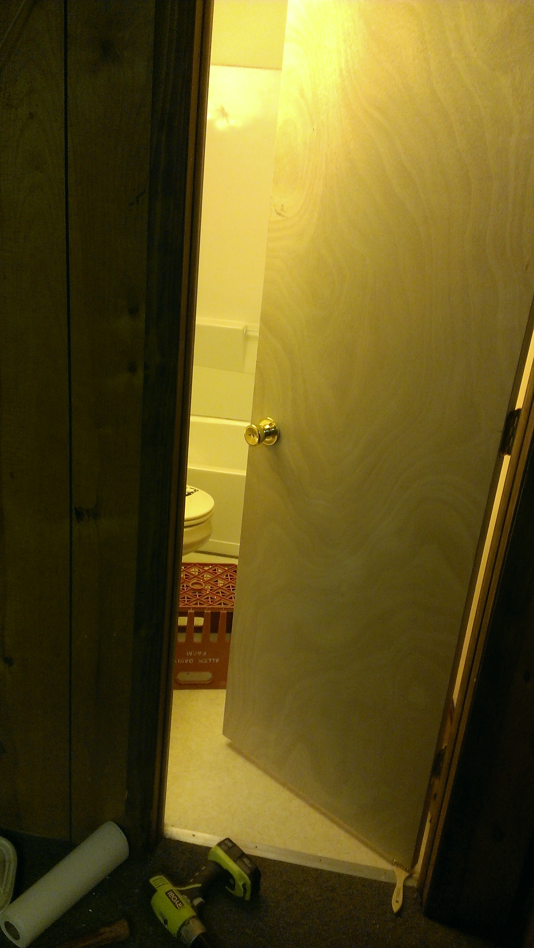 It’s a light door, it’s a cheap door, but I gotta say, it looks as good as that kind of door can look. The job I did was just as good as anything done by the last professional contractor that worked in that place, and waay better than the crappy work done by the last couple of handymen I hired.